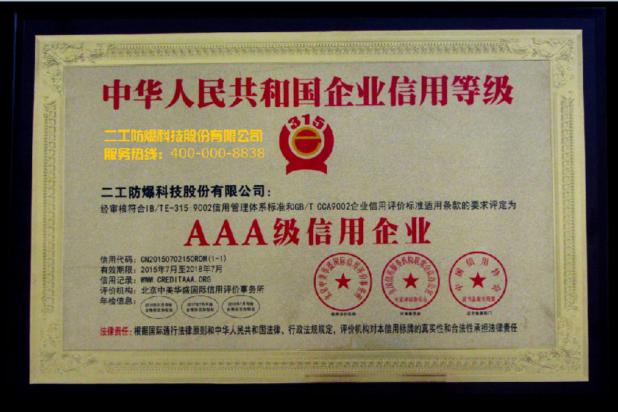 • 二工股份(AAA級(jí)誠信企業(yè))..